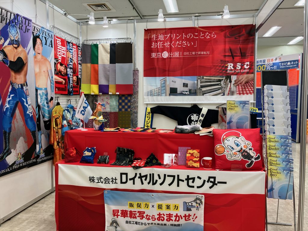 真っ赤なブースにて、昇華転写のご紹介を行いました。